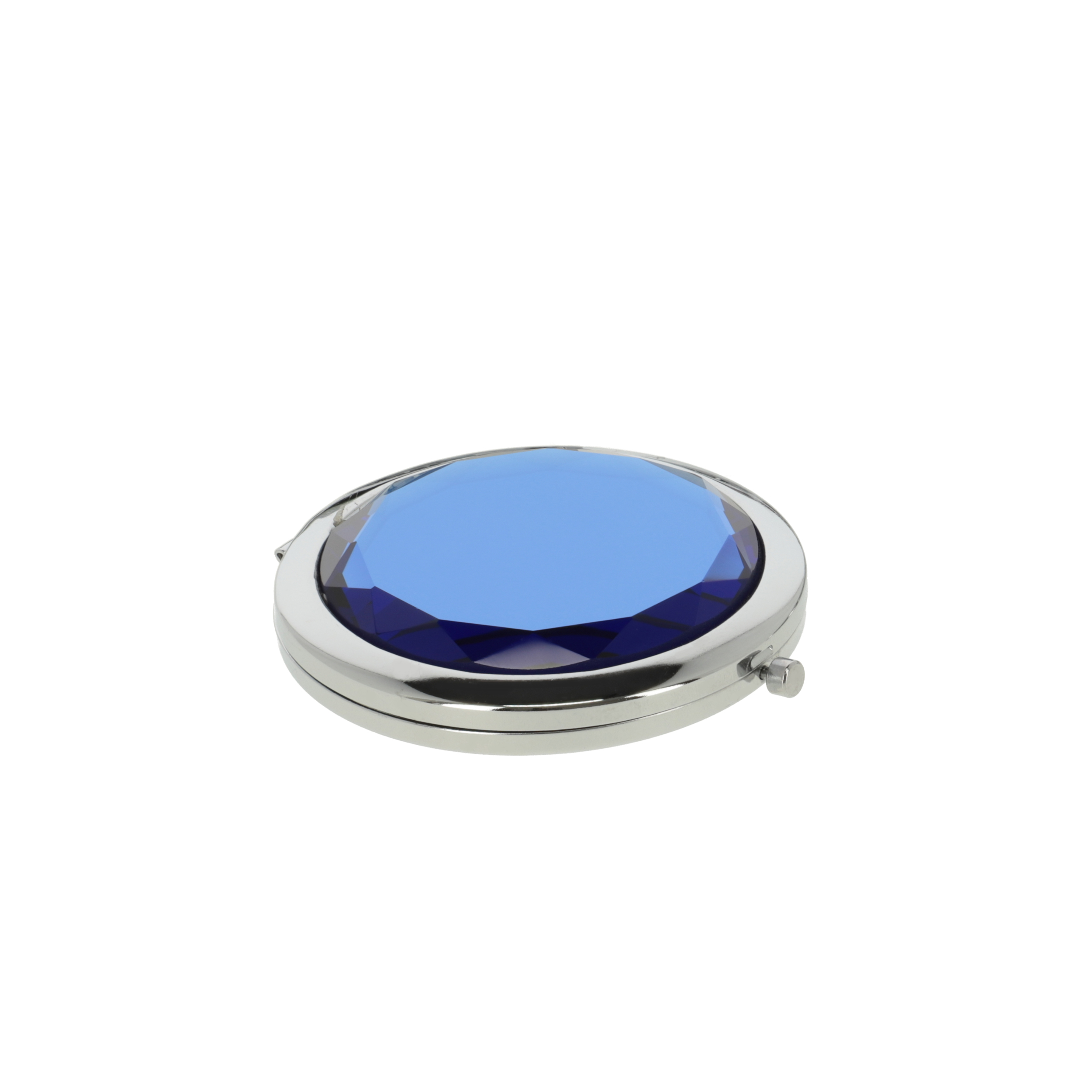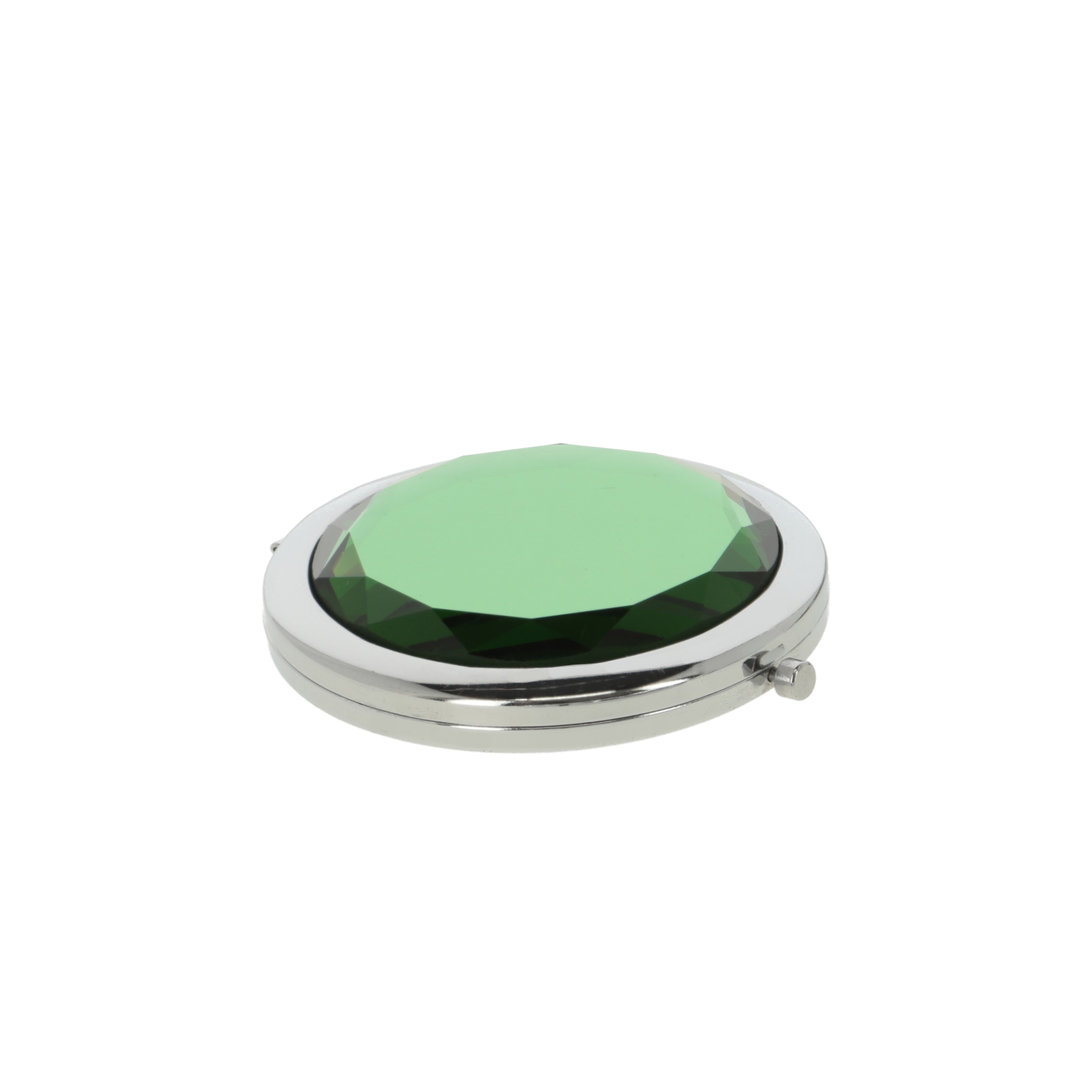 Ozdobne lusterko metalowe kieszonkowe dwustronne ,w tym jedno powiększające 2 razy, zamykane na zatrzask górna część przypominająca oszlifowany diament