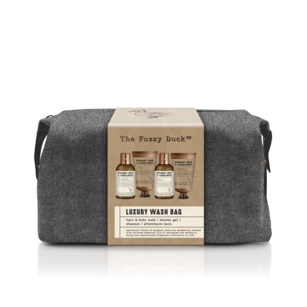 Zestaw kosmetyków dla mężczyzn w stylowej, pojemnej kosmetyczce. Zawiera 100ml Szampon do włosów, 100ml Płyn do mycia ciała i włosów, 50 ml Żel pod prysznic, 50ml Balsam po goleniu,